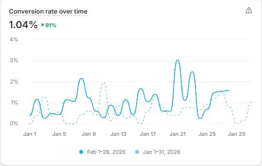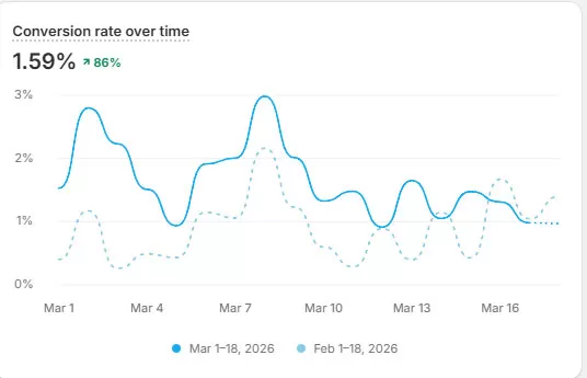 But the impact becomes even clearer if we use March as the reference point, since during March the store was 100% optimized, reaching a conversion rate of 1.59%, which is within a more normal range:
